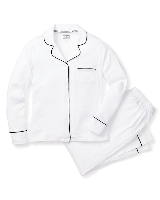 Luxe Pima Cotton White Classic Pajamas with Black Piping